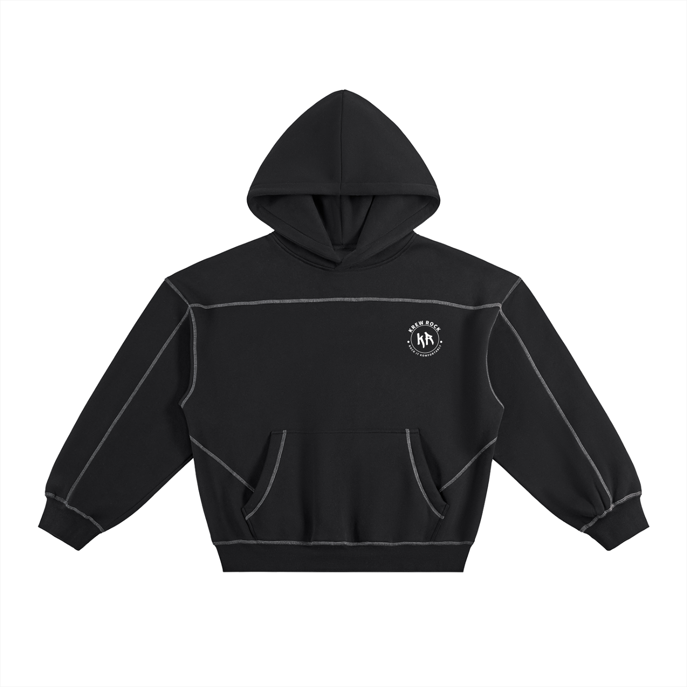 Contrast-Stitched Boxy Fleece Hoodie (White Logo)